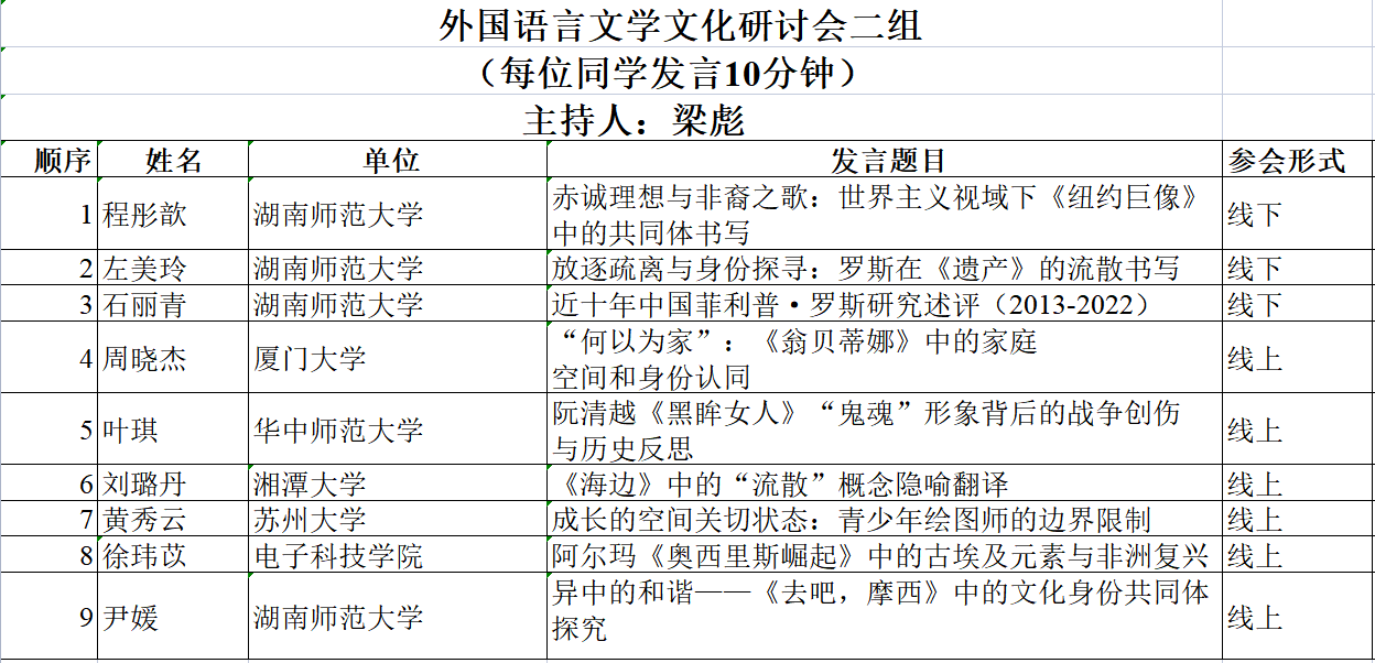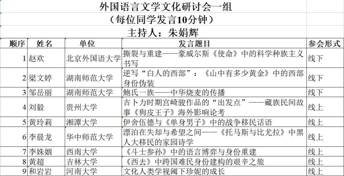 外国语言文学文化研讨会二组 (会议号:185-125-456) |