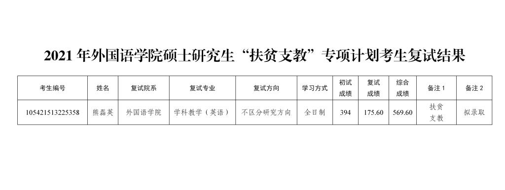 2021年澳门pg官方电子平台硕士研究生“扶贫支教”专项计划考生复试结果
