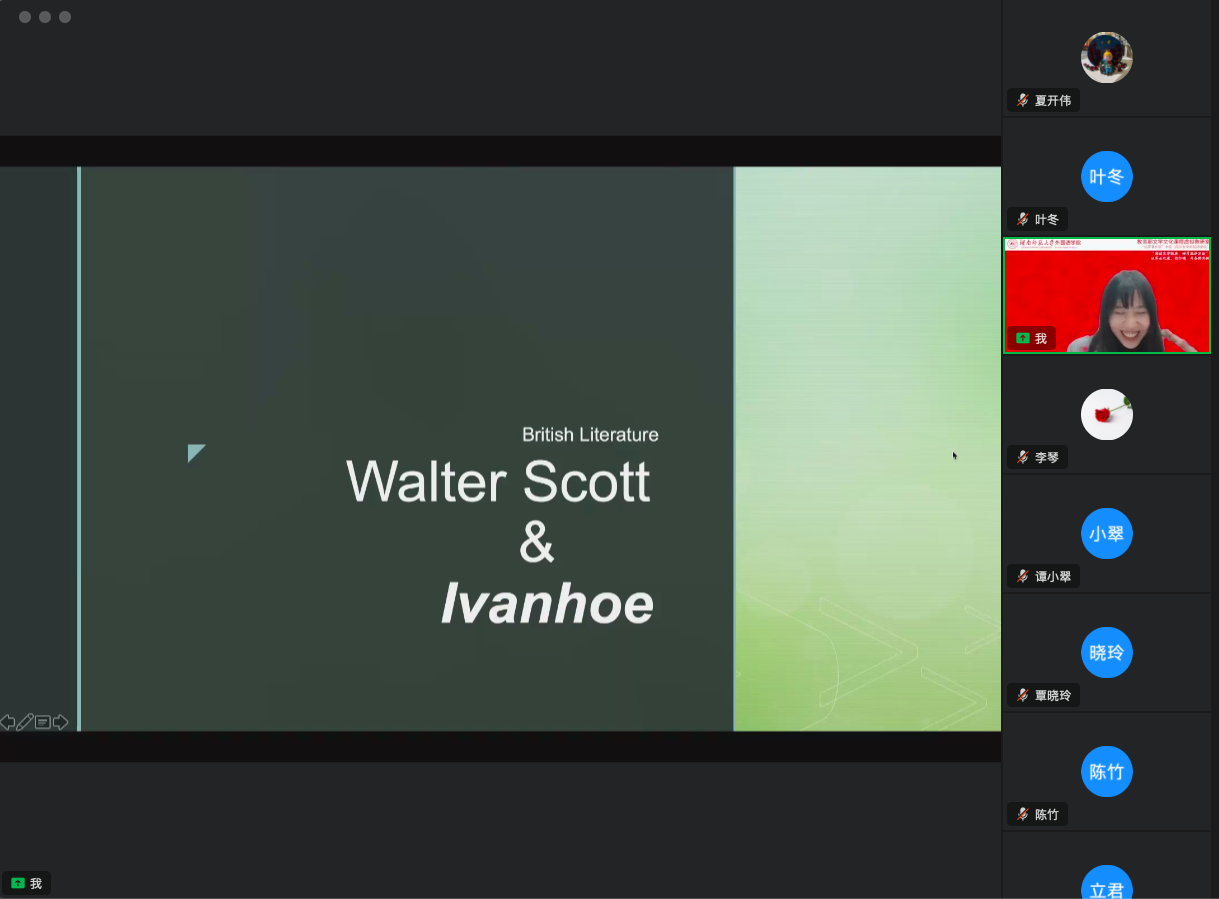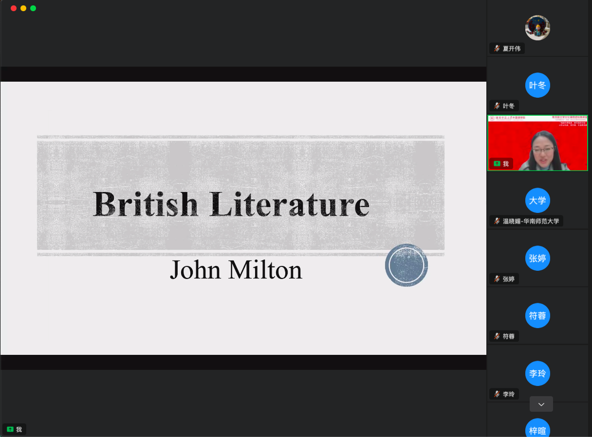 (通讯员 夏开伟)2022年11月27日,教育部文学文化课程虚拟教研室通过钉钉平台开展了一次“英国文学”公开课专题教研交流会。本次活动由澳门pg官方电子平台英语系系主任叶冬副教授主持,四川大学澳门pg官方电子平台英文系廖运刚、崔梦田和胡沥丹三位教师一同进行在线分享——“‘阅读文学经典、研习批评方法’:以莎士比亚、弥尔顿、司各特为例”。