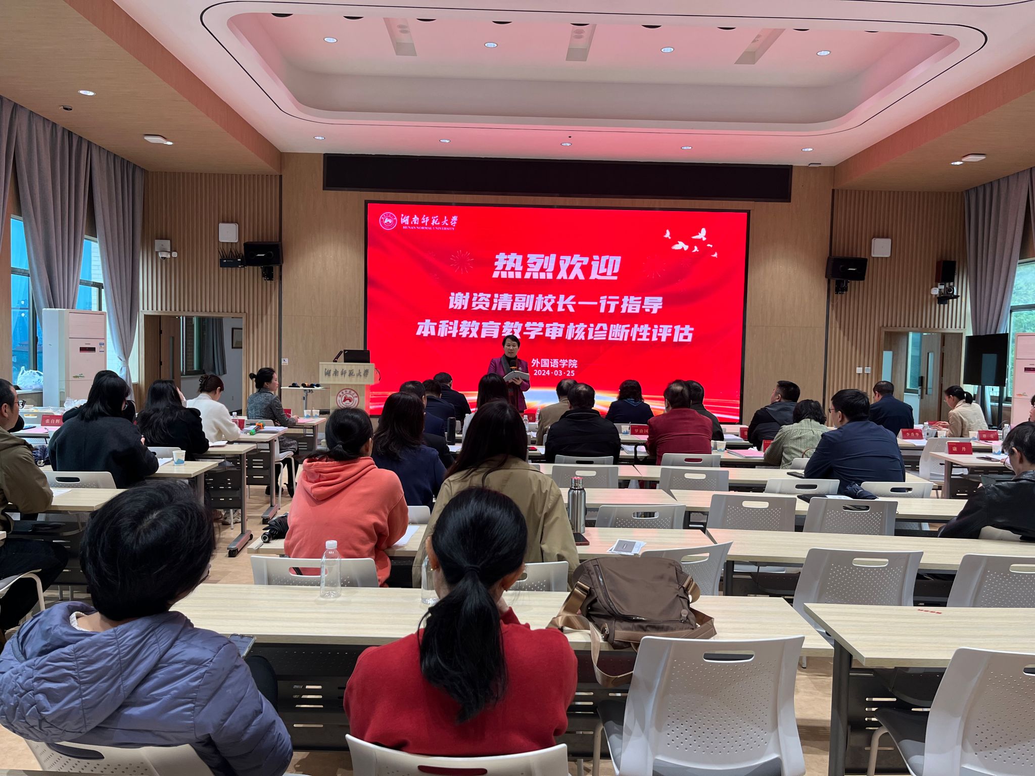 3月25日上午,谢资清副校长率督导专家团队莅临澳门pg官网,开展本科教育教学审核诊断性评估指导工作。澳门pg官方电子平台副院长刘白向专家组详细汇报了学院本科教育教学举措、成效和存在的问题。专家组通过审阅人才培养方案、教学大纲、规章制度,调阅毕业论文、课程试卷,以及深入课堂听课看课等方式,对澳门pg官网本科教育教学工作进行了全面、细致的诊断。专家组就澳门pg官网在教育教学中的亮点和不足,提出了针对性的意见和建议。谢资清副校长在总结中指出,学院要高度重视专家组的整改建议,将其作为提升本科教育教学质量的重要抓手。澳门pg官方电子平台院长曾艳钰代表学院向专家组表示感谢,并表示将认真吸纳专家组的宝贵意见,督促学院相关部门及各系部做好整改工作,确保以饱满的状态迎接本科教育教学审核评估。