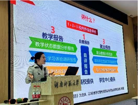 为进一步增强全院教职工对本科教育教学审核评估工作的认识,4月7日下午,澳门pg官网在腾龙楼613报告厅举行了全院教职工大会。刘白副院长围绕“是什么,评什么,怎么迎评”的主题,详细解读了审核评估工作的考察要点、1+3+3报告等内容,提出了各系部在下一阶段要整改的各项工作和自查自纠的要求。曾艳钰院长及沈贤岚书记均强调了审核评估工作对于提升学院整体办学育人水平的重要性,要求全院教职工高度重视本科教育教学审核评估工作。