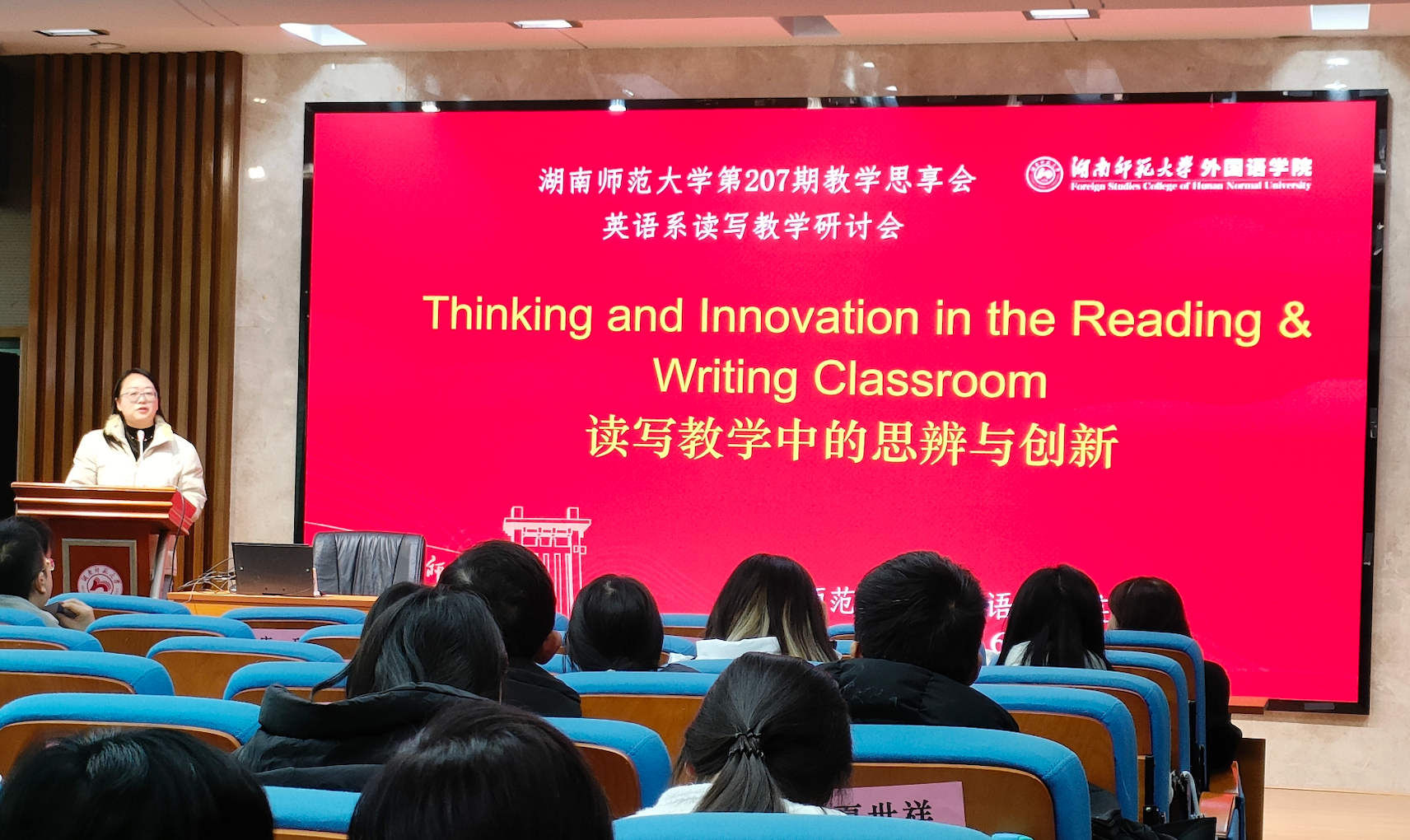 通讯员:左祯)2024年12月6日下午,澳门pg官方电子平台第207期教师教学思享会在澳门pg官方电子平台腾龙楼515报告厅圆满举办。本次思享会以“读写教学中的思辨与创新”为主题,探讨了读写教学中如何提升学生思辨能力以及如何创新教学方式;邀请了中南大学澳门pg官方电子平台原院长李清平教授、湖南大学汪朋副教授、英语系听说读写教研室主任陈忠平副教授、综合英语教研室主任张宜以及欧阳惠老师作为主讲嘉宾,由英语系主任叶冬主持。澳门pg官方电子平台的教学副院长刘白教授为会议致辞,英语系各教研室教师以及部分学科教学研究生和21级本科生积极参与此次思享会。