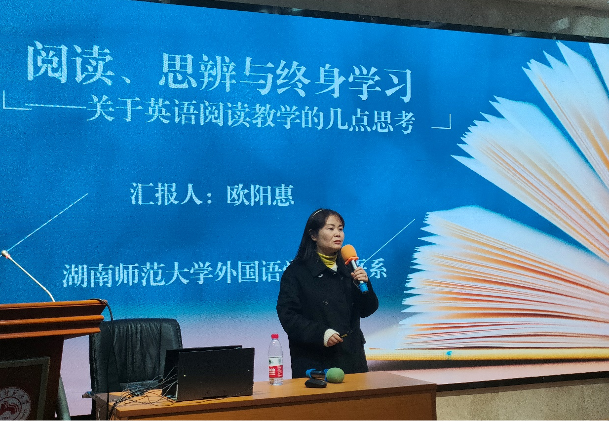 欧阳惠博士以“阅读、思辨与终身学习”为题,结合所参与编写的阅读教材,分享了自己在阅读教学中的感悟和思考,强调了阅读对终身学习的重要作用。