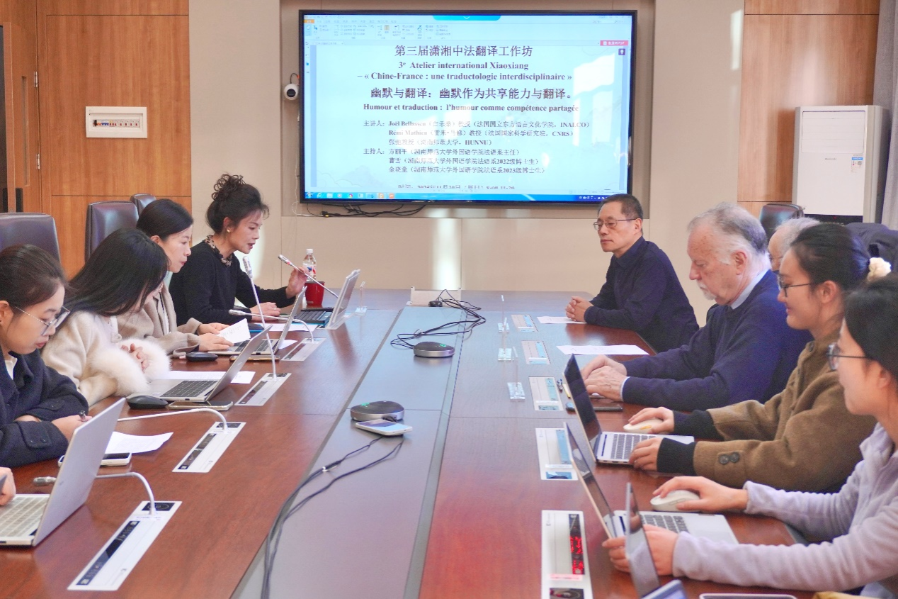 (通讯员 陈雨佳 陈丹 王淮星 仲佳洁)11月30日上午,澳门pg官方电子平台法语系第三届潇湘中法翻译工作坊(3eAtelier international Xiaoxiang– « Chine-France : une traductologie interdisciplinaire »)在澳门pg官方电子平台腾龙楼204会议室成功举办。