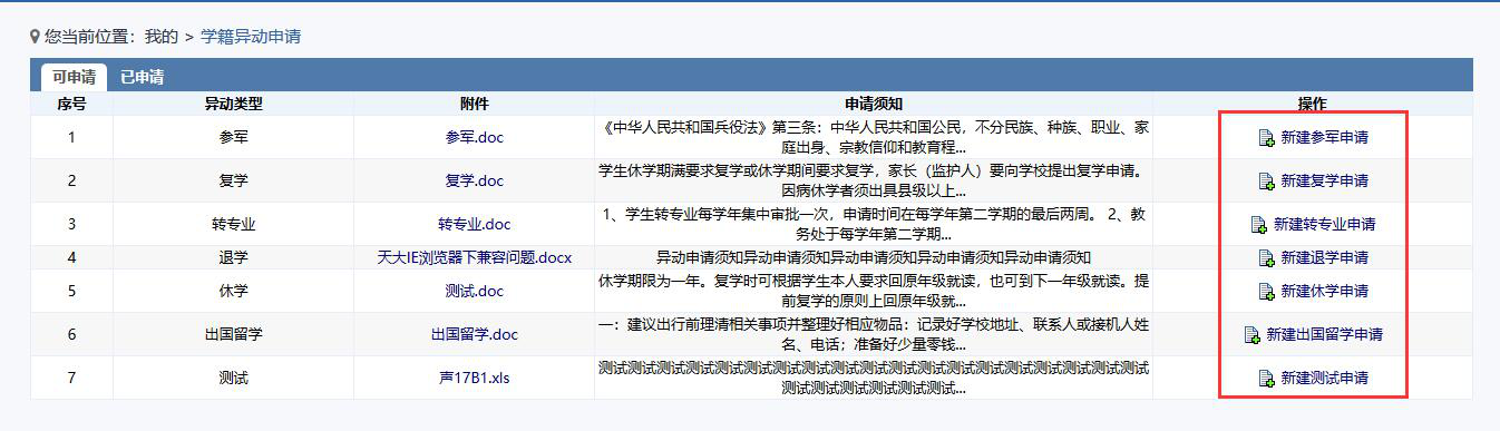 1. 学籍异动在线申请