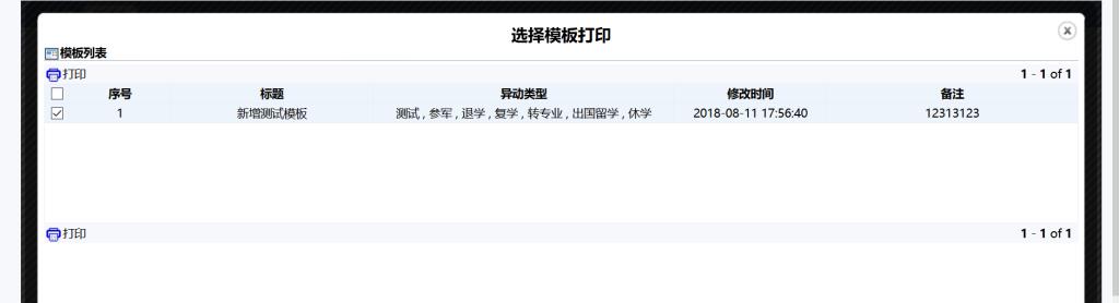 6、点击对应的模板后点击打印显示异动申请单,如图6所示。