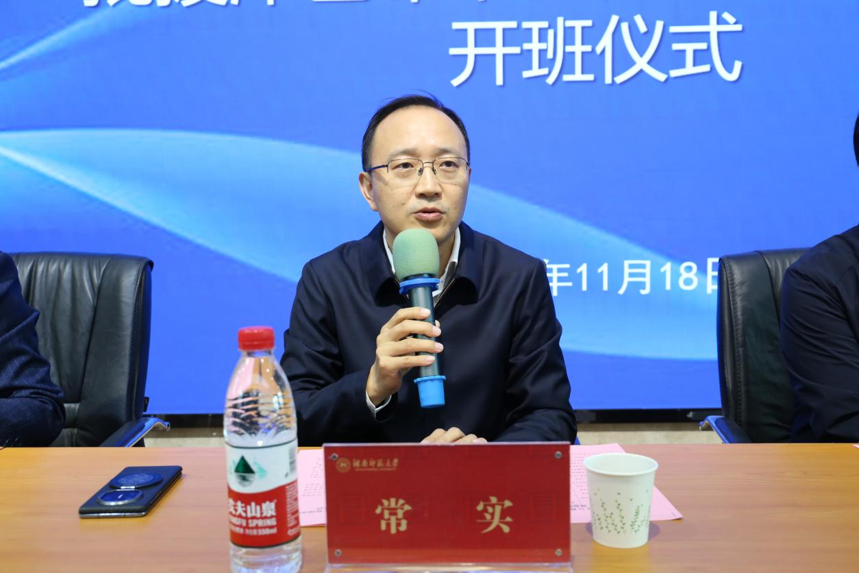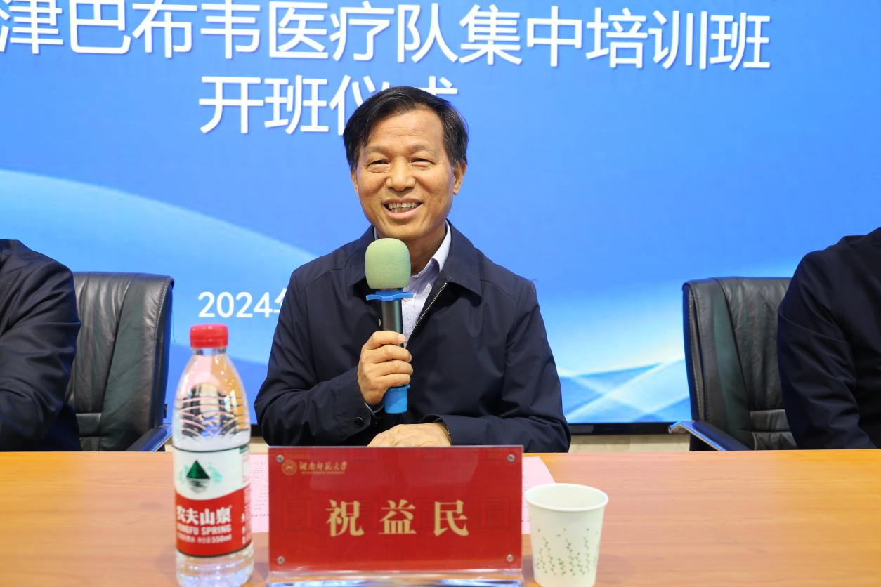 祝益民热烈欢迎了队员们的到来,并对湖南省卫生健康委的信任表示衷心感谢。他表示能够承接医疗队的培训任务是省卫健委对我校教育水平和专业素养的高度认可,也是我校积极参与国际事务的责当任担。他强调,我校将全力以赴,以高度的政治责任精心筹备,为医疗队提供优质的外语培训服务,以期全面提升学员的外语综合运用能力、跨文化交际能力,更好地履行医疗援助的职责。