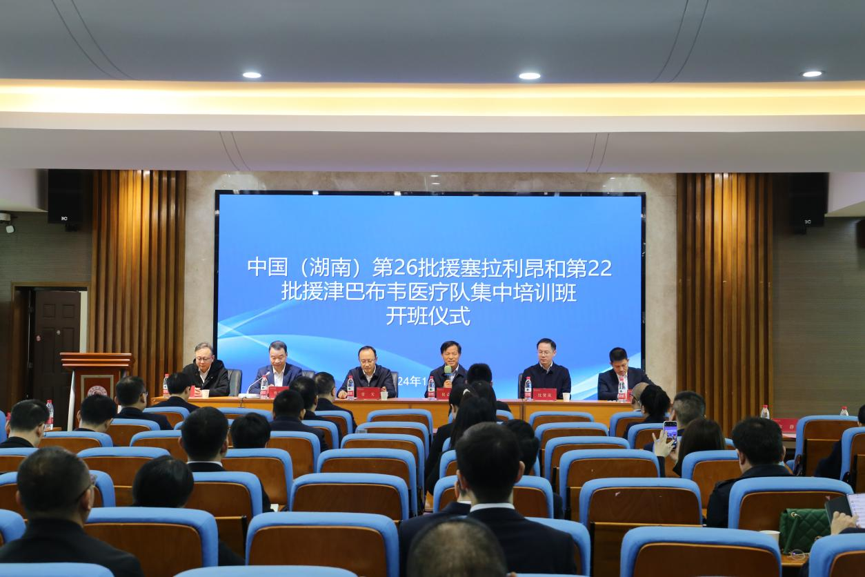 (通讯员 王昭春 吴黛琳)11月18日上午,澳门pg官网于腾龙楼515报告厅举行第26批援塞拉利昂和第22批援津巴布韦医疗队集中培训班开班仪式。湖南省卫生健康委党组成员、副主任常实,我校医学部党工委书记、主任祝益民,澳门pg官网党委书记沈贤岚,副院长司徒皓出席典礼。仪式由省卫生健康委国际合作处处长曹跃斌主持。
