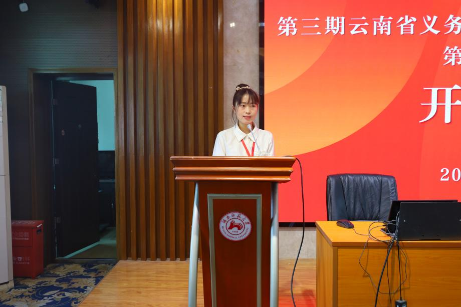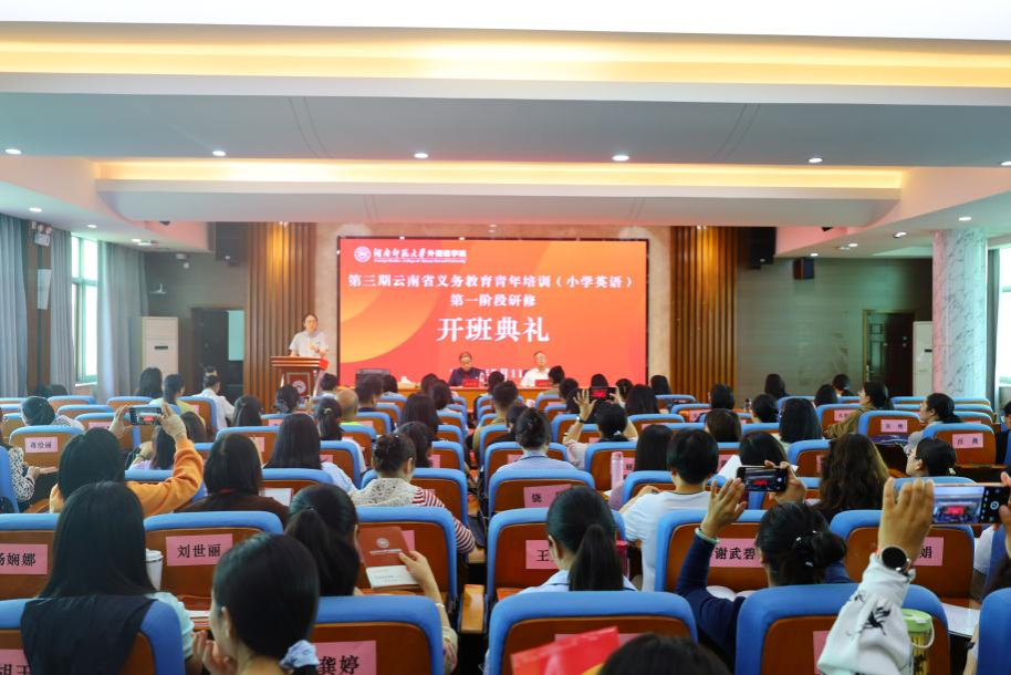 (通讯员 陶瑜)5月11日上午,云南省义务教育青年培训(小学英语)第一阶段研修在澳门pg官网515报告厅隆重开班。澳门pg官方电子平台“国培计划”项目办副主任朱常青、澳门pg官方电子平台副院长司徒皓出席开班典礼,澳门pg官方电子平台培训中心主任宋静主持活动。