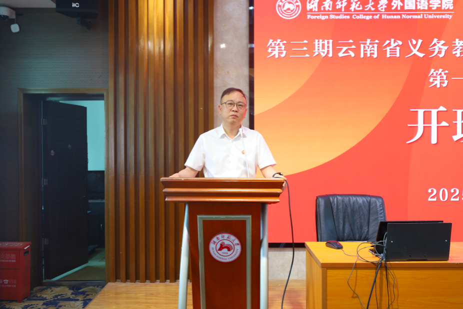 开班典礼上,澳门pg官方电子平台副院长司徒皓代表学校对云南省教育厅的支持表示衷心感谢,并向参训教师致以诚挚问候。他介绍了澳门pg官方电子平台及澳门pg官方电子平台的深厚历史与卓越成就。他鼓励各位学员珍惜学习机会,积极思考、主动实践,将先进教学理念融入课堂,为云南小学英语教育注入新活力。