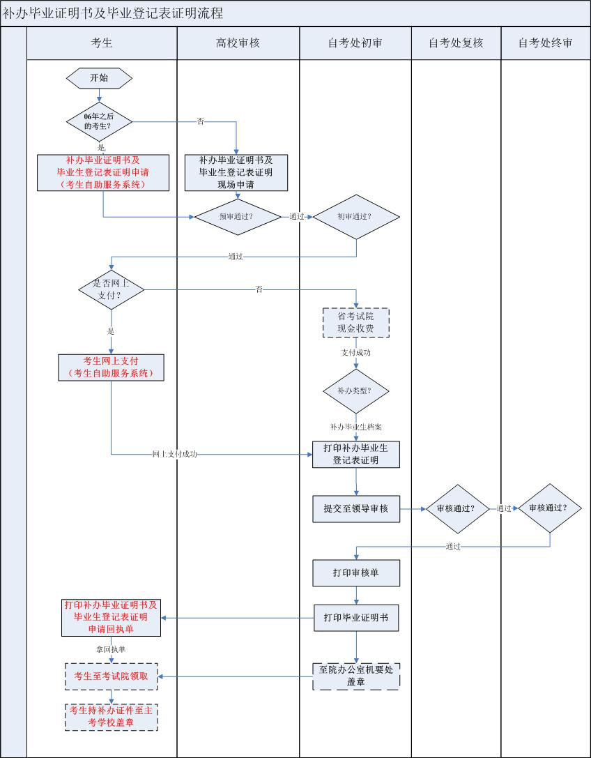 湖南省高等教育自学考试毕业证明书和毕业生登记表证明书办理流程图