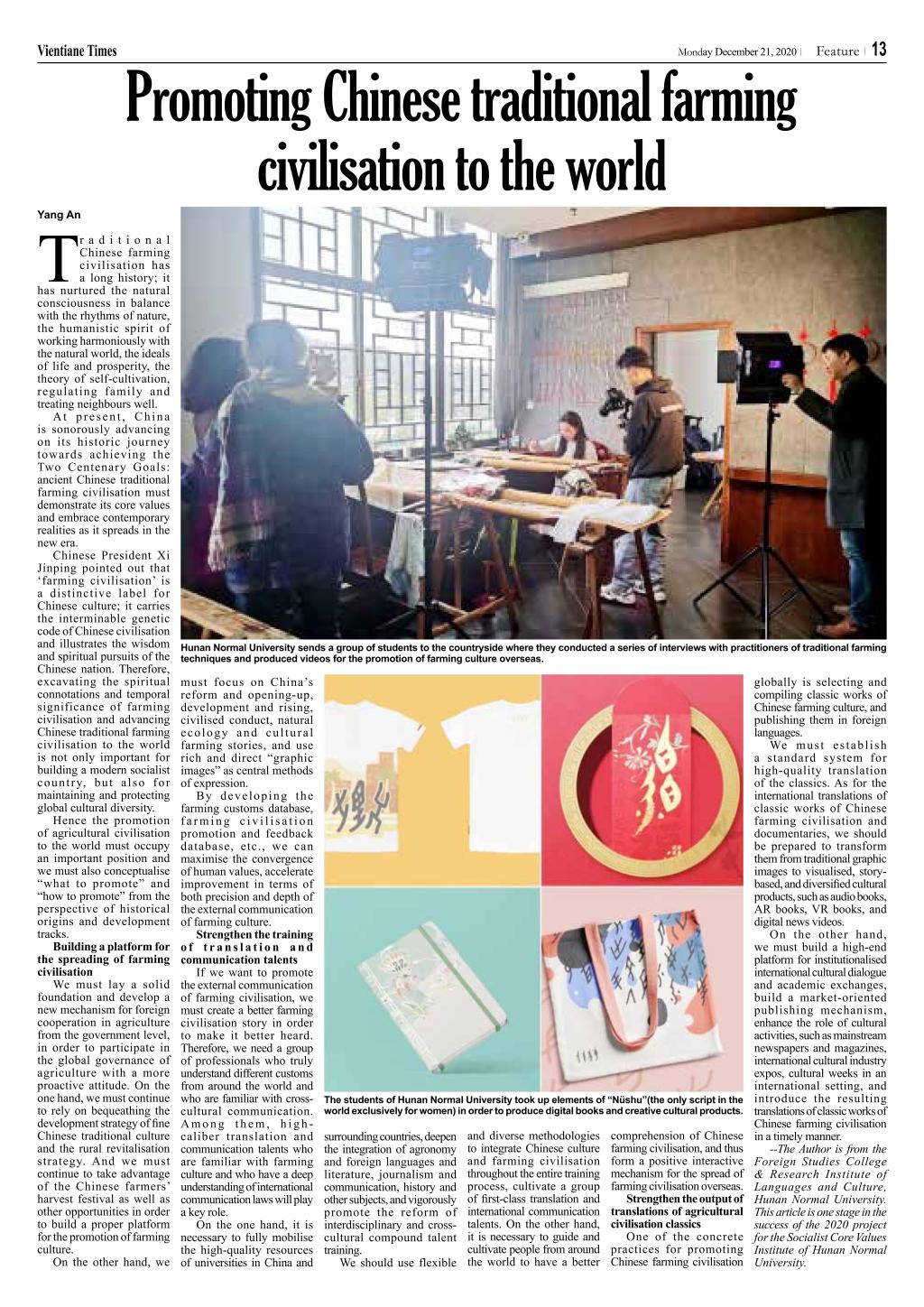12月21日,老挝官方英文报刊《万象时报》刊发澳门pg官网杨安老师文章 Promoting Chinese traditional farming civilisation to the world.