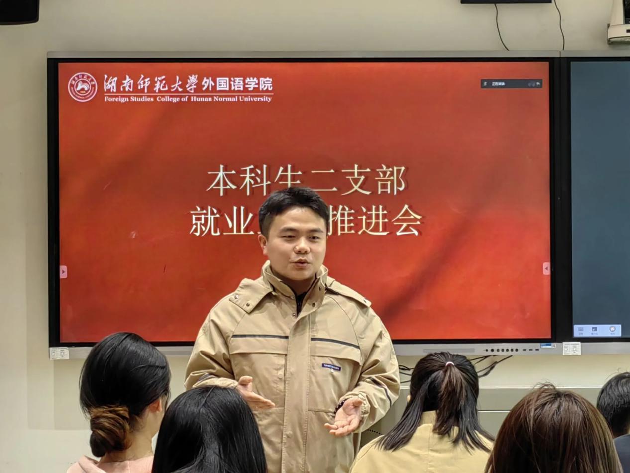 2019级辅导员戴霁斌老师围绕本科生二支部党员就业帮扶工作做部署安排。