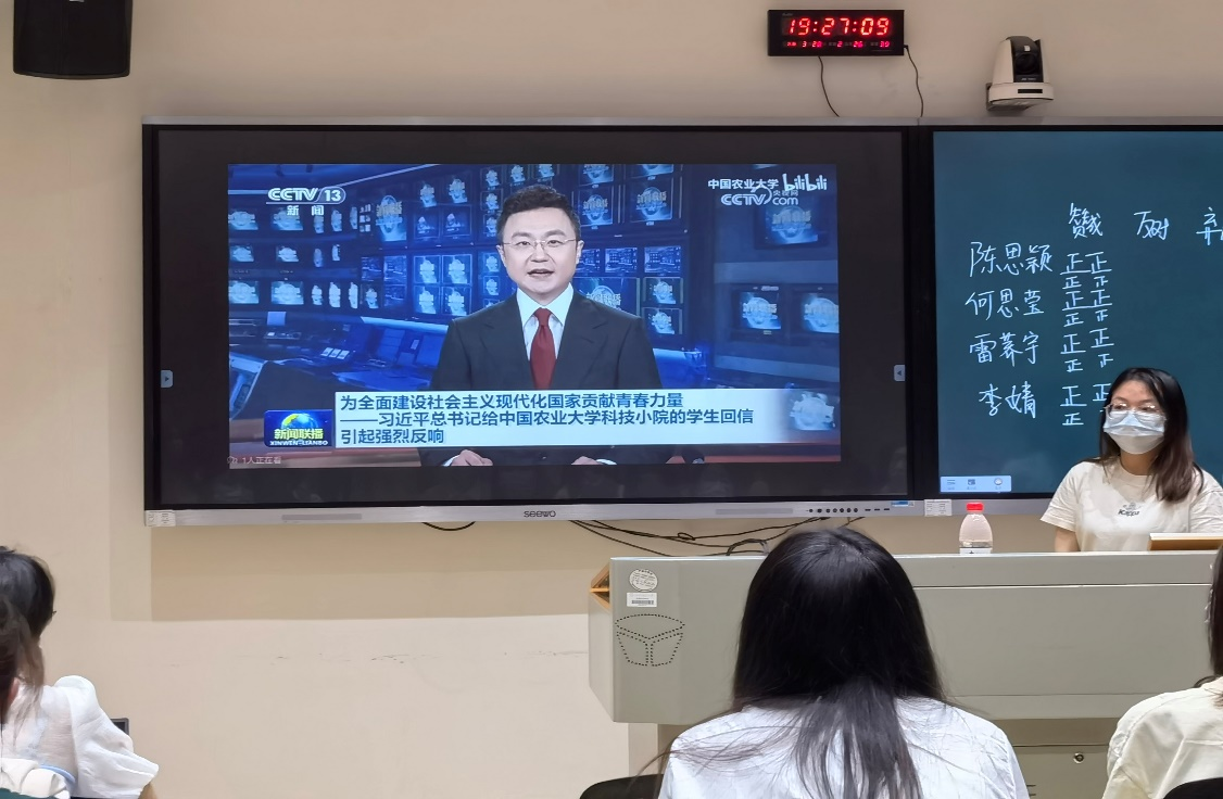 徐慧兰带领支部党员共同学习回信内容和精神,并共同观看回信系列报道及中国式乡村振兴战略的相关视频资料,进一步了解国情农情,体会习近平总书记对大学生的殷切期望。