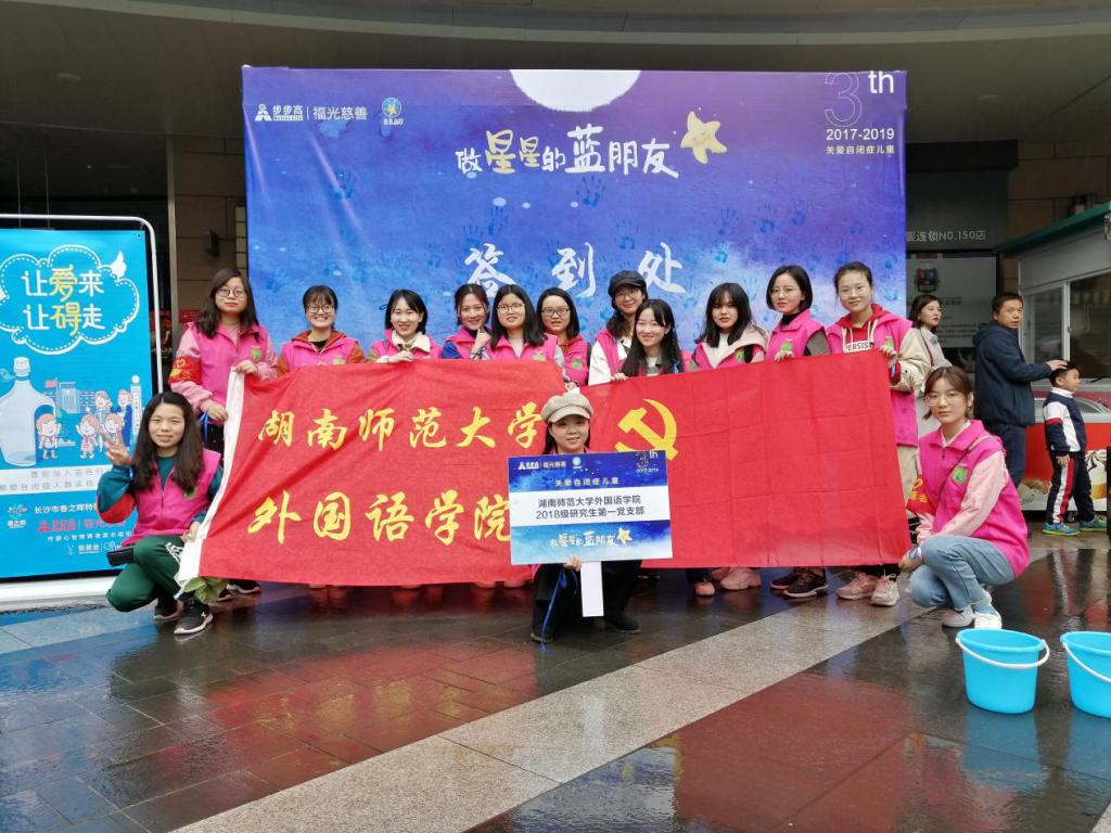 (通讯员 刘慧娟 余红)4月13日,澳门pg官网2018级研究生第一支部在长沙梅溪湖步步高新天地参与了由步步高福光慈善基金会主办的第三届“星星点灯·做星星的蓝朋友”大型公益活动,为倡导、推广全社会尊重、关注、了解自闭症儿童成长文化,关注、关爱自闭症儿童的教育,为其创造社会融合学习的机会。