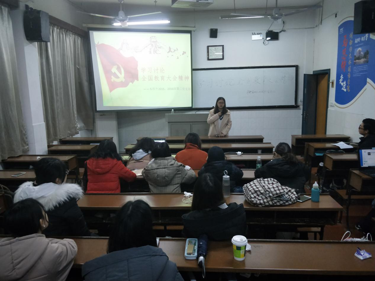 (通讯员 刘津)1229日晚上,本科生20152016级第二党支部开展“全国教育大会精神”学习活动。
