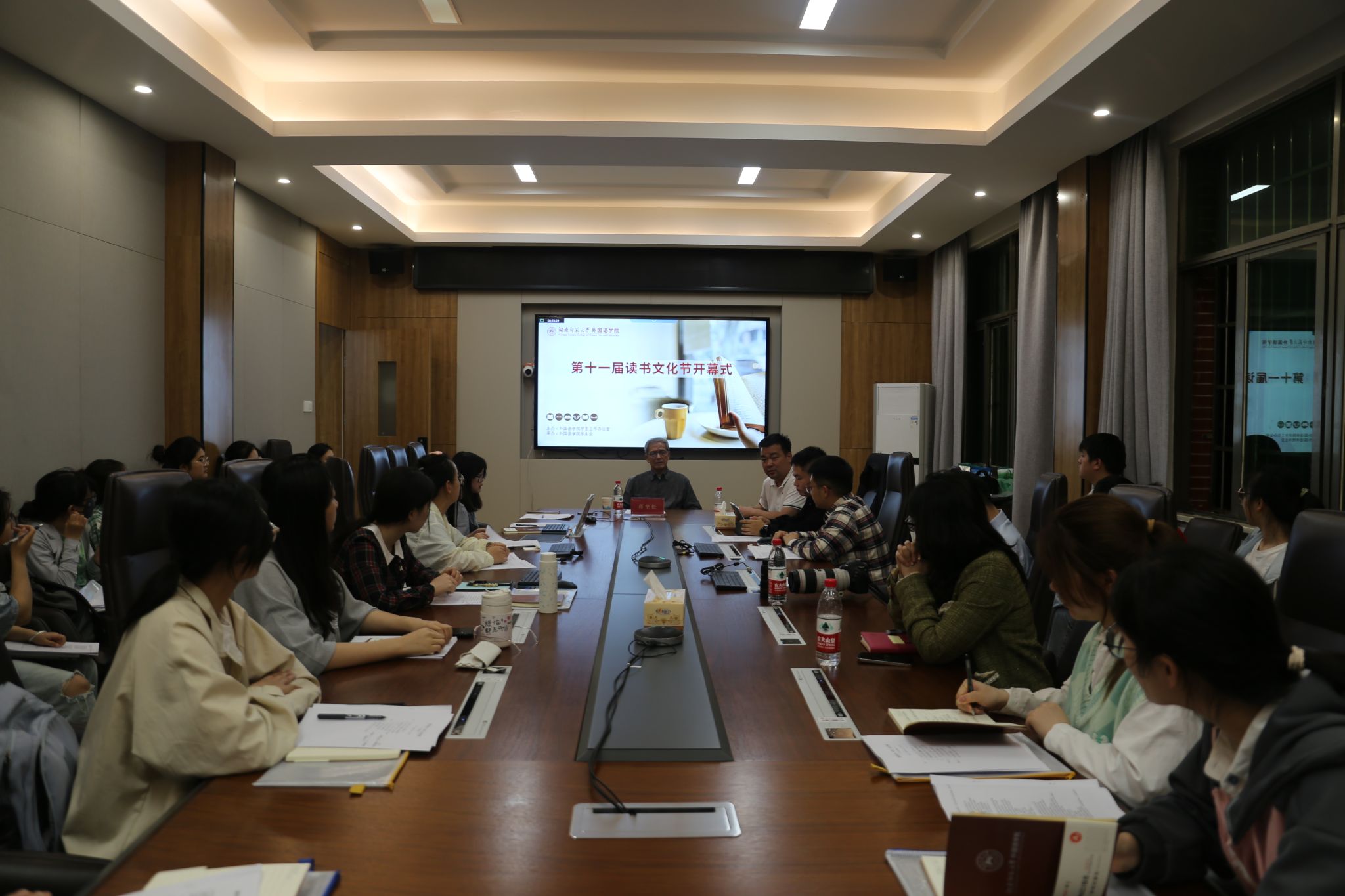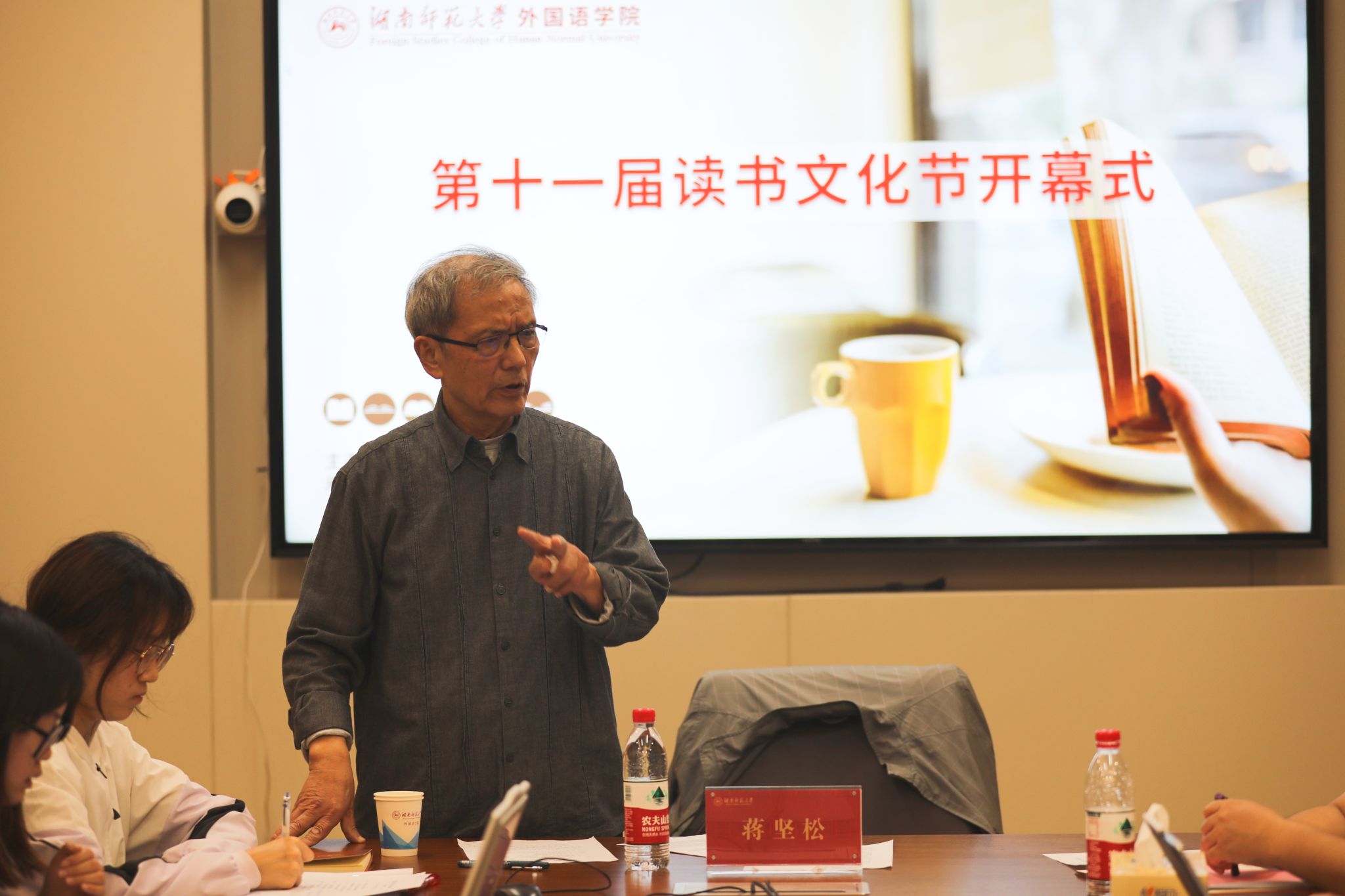 (通讯员 马小雪 许佳怡)4月22日晚,澳门pg官网在腾龙楼204会议室开展第十一届读书文化节开幕式暨“老教授带我读经典”主题活动,湖南省翻译工作者协会原会长、澳门pg官方电子平台原院长蒋坚松教授受邀担任主讲嘉宾,院党委副书记李蜜及学院全体辅导员参与活动。活动由院学工办主任张元强主持。