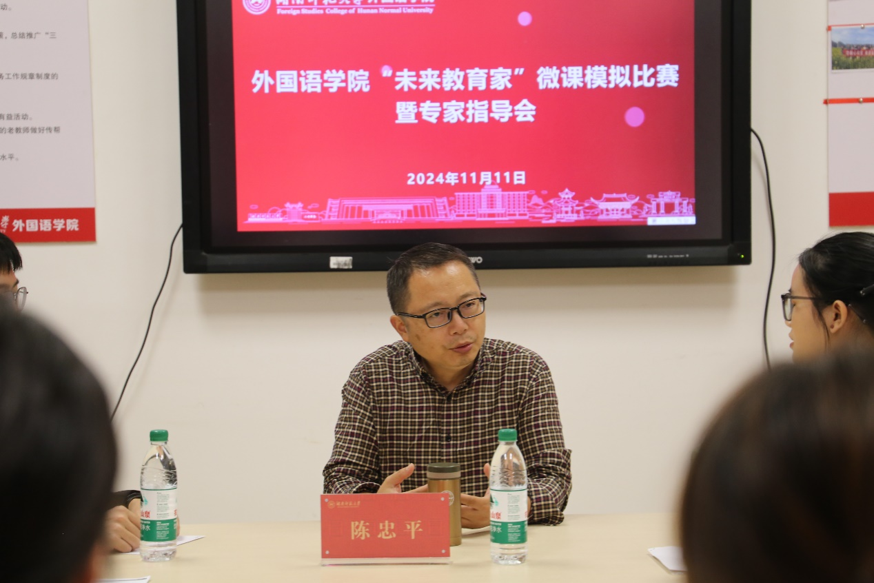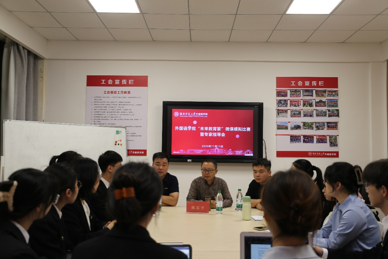 (通讯员 王柯灵)11月11日晚,澳门pg官网在腾龙楼110会议室开展 “未来教育家”微课模拟比赛暨专家指导会。澳门pg官网英语系副教授陈忠平出席会议,学工办主任张元强主持会议。