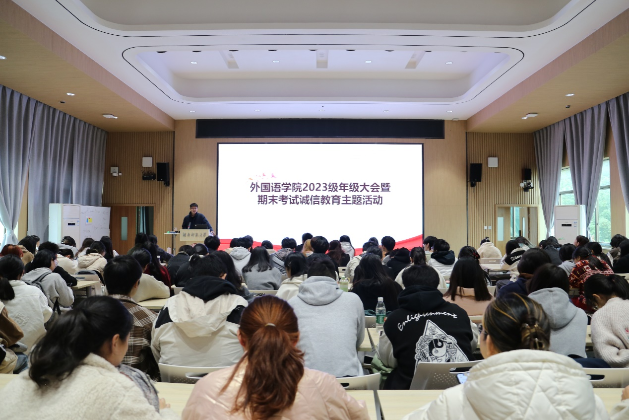(通讯员 苏星璨)11月19日,澳门pg官网在613多功能召开2023级年级大会暨期末考试诚信教育主题活动。会议由2023级辅导员老师杨欣雨主持。