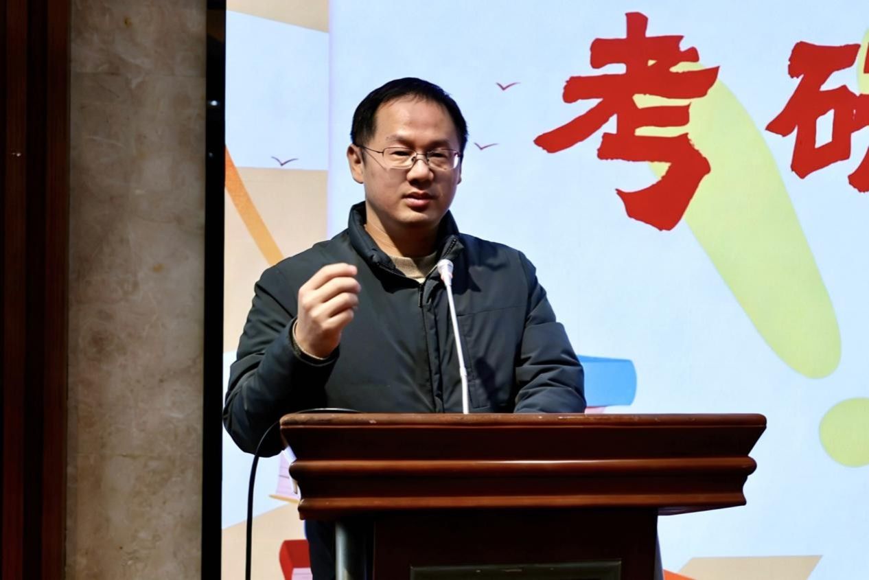 沈贤岚向同学们表达了殷切关怀与真诚祝福。他首先对同学们追求卓越的信念、刻苦求学的初心给予高度肯定。他强调,学院始终是学子们考研路上最坚实的后盾,将持续在学习方法指导、复习资源供给、心理健康关怀等方面提供全方位支持,为同学们的备考之路保驾护航。同时,他勉励全体考研学子保持昂扬向上的斗志,以扎实的知识储备、稳健的应考心态迎接挑战。