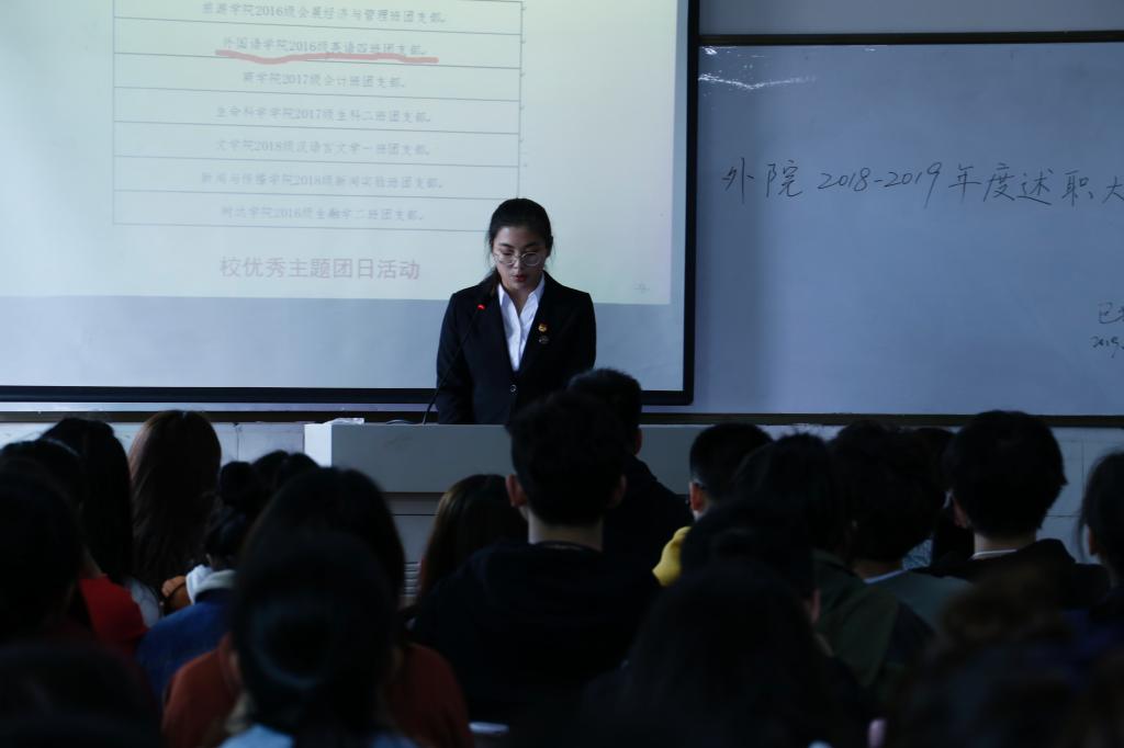 (通讯员 刘丽 谭伊萍)4月11日下午,澳门pg官方电子平台在404教室举行2018—2019年度“一心双环”团学组织述职大会。学院学工办老师张元强、周凌月、舒怡,以及学校监察委员参加会议。会议由学院团委青发部部长房文涛主持。