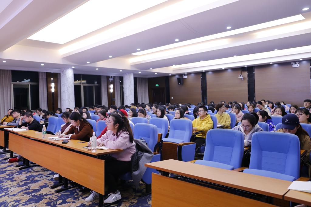 四会全体学生干部、2018级年级干部及各班班长、团支书、本科生第一党支部党员参加并认真聆听培训。