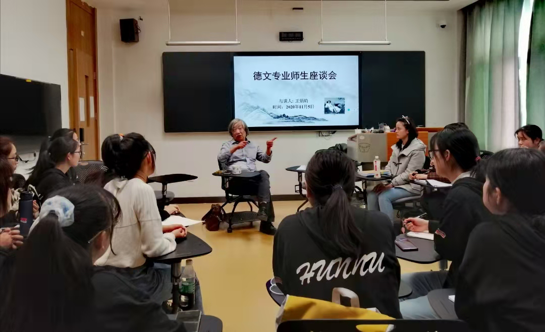 (通讯员 肖家玉 范妮)11月5日下午,应德文专业邀请,我校“潇湘学者”讲座教授、北京外国语大学王炳钧老师来到腾龙楼,与德文专业学生展开亲切座谈。德文专业20级全体本科生和博士生及相关教师参加了座谈会。