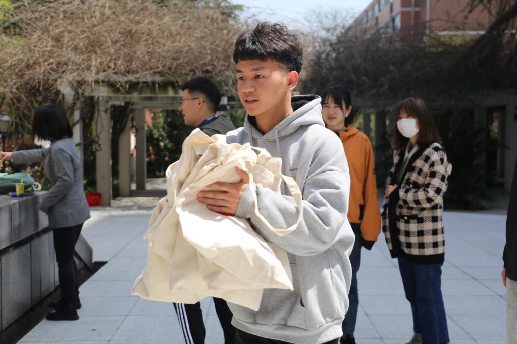 贺慧星及学工办老师为健美操队员分发了慰问品。