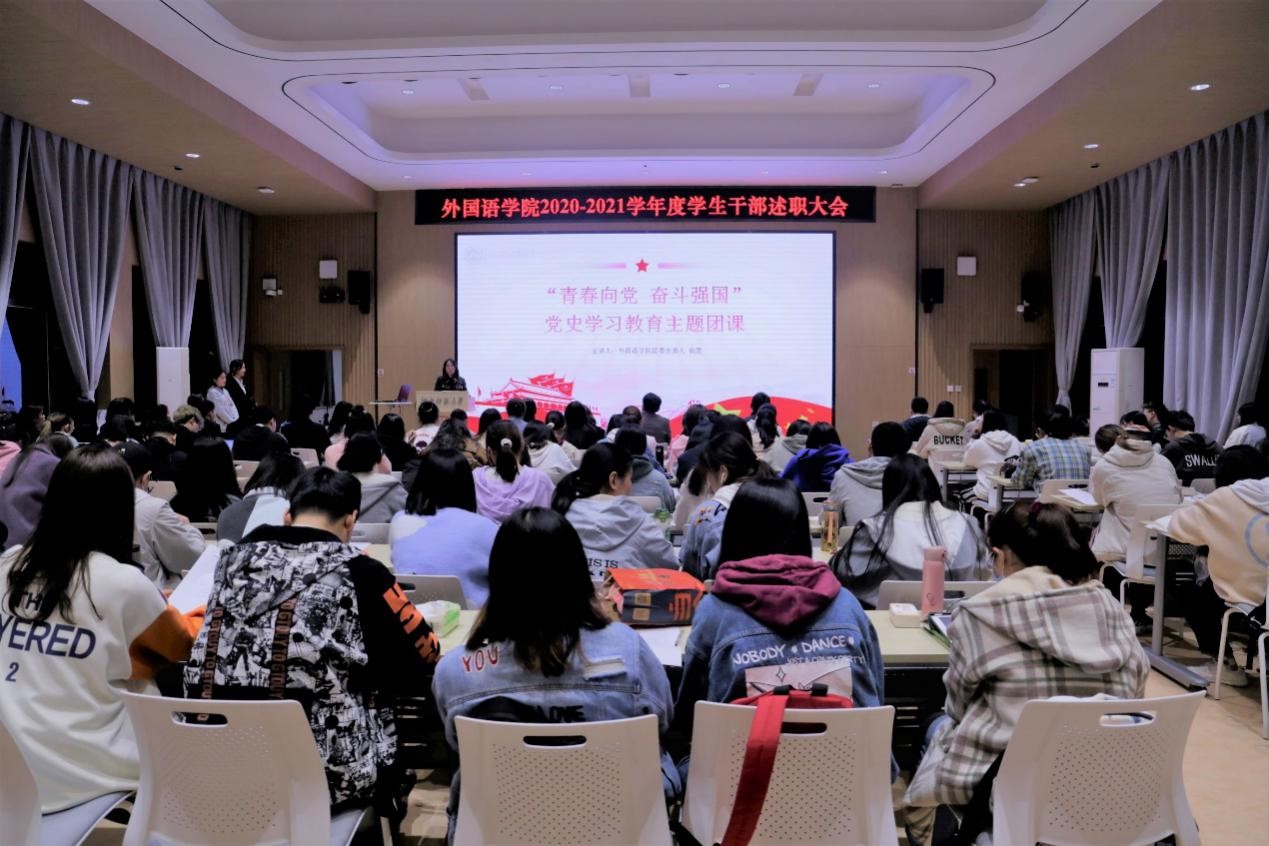 (通讯员 丁家宜 夏秦萍)为加强学生干部政治建设,总结反馈本学年澳门pg官网团学组织各系统工作,4月13日晚,澳门pg官网在腾龙楼613报告厅举行2020—2021年度学生干部考核述职大会。院党委副书记贺慧星,学工办老师周凌月、姚雯、王耀光、舒怡出席此次会议。此次会议由团委青年发展工作部负责人郭亚波主持。