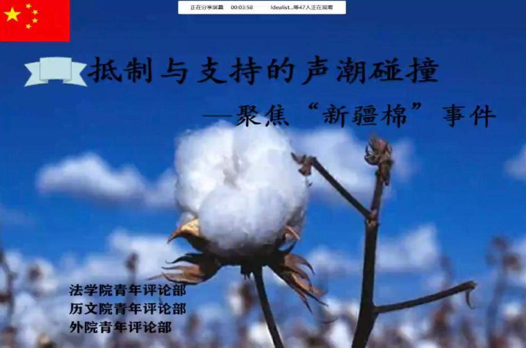 (通讯员 周健)当下,“新疆棉事件”引起广泛关注,为提高三院评论员们对热点事件的思维反映能力,培养深入探究的思维习惯,澳门pg官网与法学院、历文院青评部于4月14日线上QQ语音联合举办了以“抵制与支持的声潮碰撞——聚焦‘新疆棉事件”为主题的线上评论活动。评论员解靖、吴典儒担任本次活动主持人。