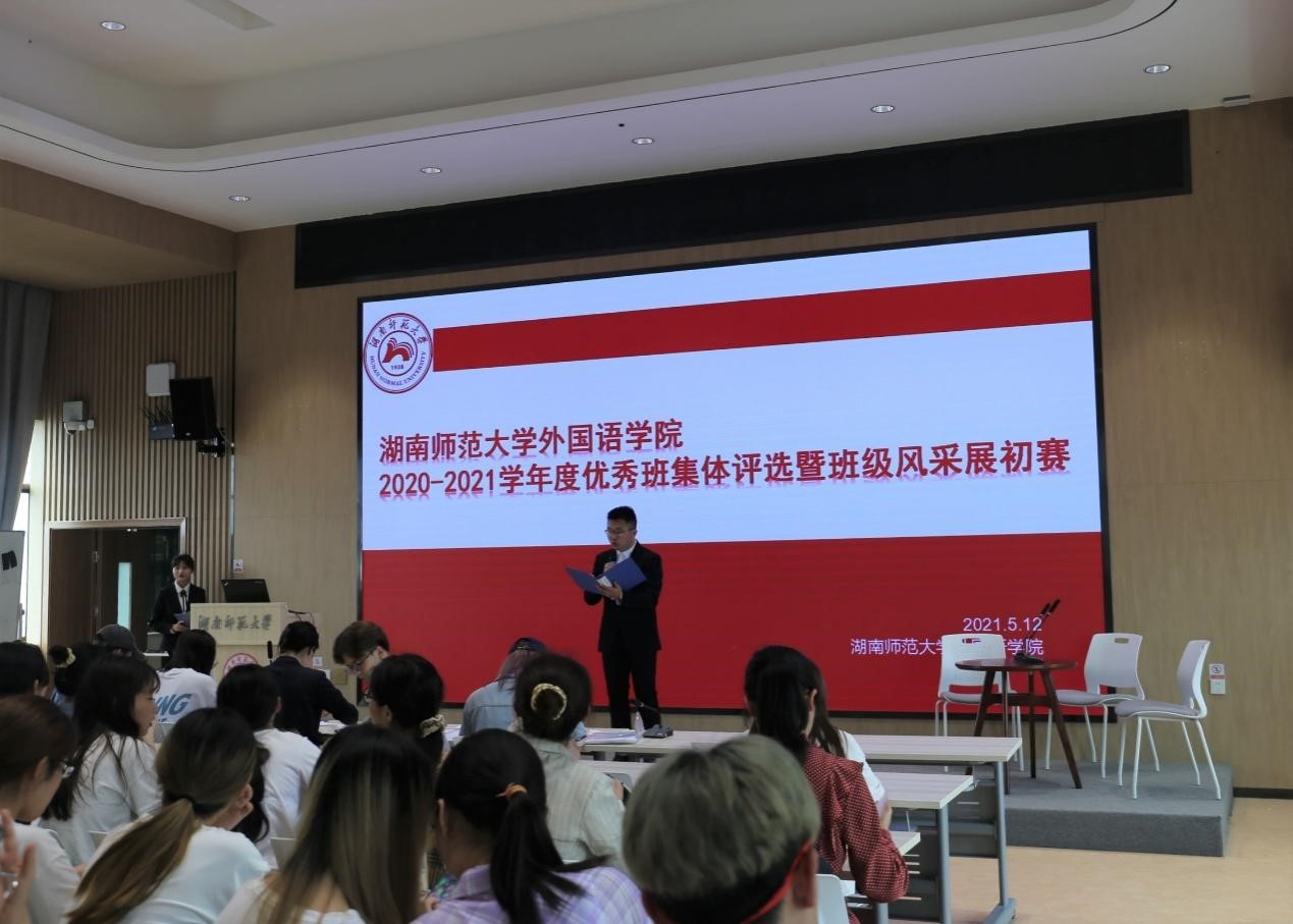 (通讯员陈可颐丁家宜)为了提升班级凝聚力,加强思想引领,促进学风建设,展示各班在学习及实践活动中的成果。5月12日中午,澳门pg官网2019级师生于腾龙楼613多功能报告厅举行2020-2021年度优秀班集体评选暨班级风采展初赛。2019级辅导员姚雯,2017级英语三班房文涛,2017级朝鲜语班刘越,2018级英语三班李芊芊,2018级翻译班彭宇担任此次比赛的评委。比赛由2019级朝鲜语班纪凌浩主持。