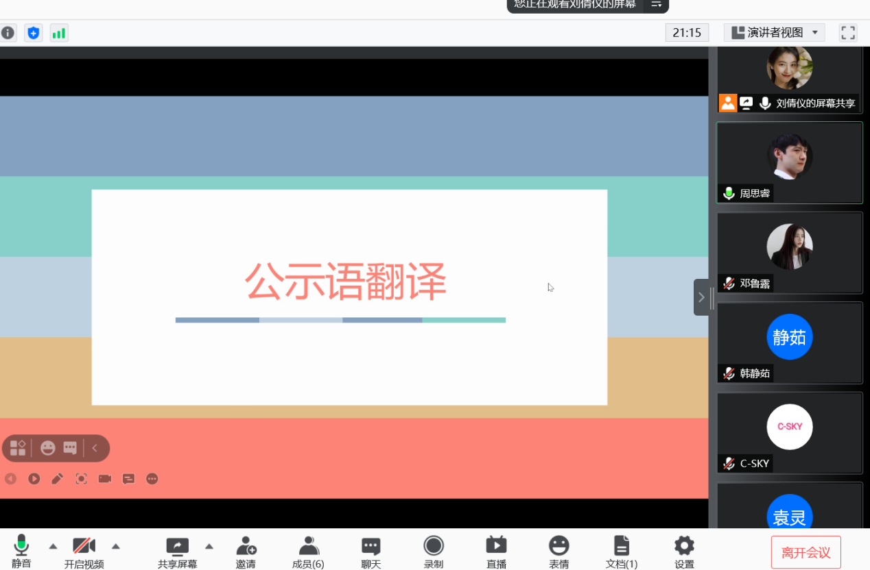 此次会议有利于加深调研团对公示语翻译的理解,提升相关素养,规范原则标准,促使同学们在接下来的实地调研中更有针对性地发现问题,更有效地开展调查研究。