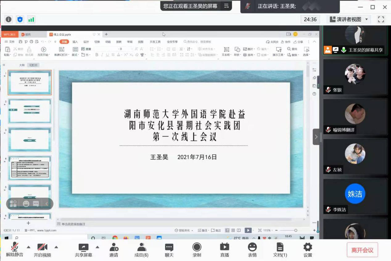 (通讯员 张银)为做好暑期社会实践活动的准备工作、合理规划实地调研路线,7月16日晚,澳门pg官网赴益阳市安化县暑期社会实践团举行第一次线上会议,团队指导老师王耀光参加会议。
