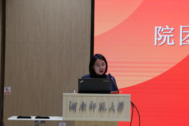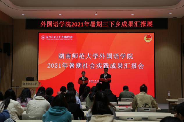 汇报会伊始,姚雯发表致辞,代表学院团委向圆满完成三下乡的同学表示祝贺和问候。她介绍了学院暑期社会实践活动开展情况,并呼吁更多外院学子积极投身于暑期社会实践活动。