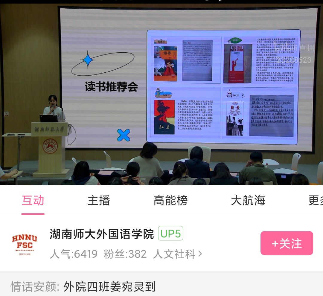 汇报会上,澳门pg官网六支实践队伍依次进行成果展示。六支队伍的选题涉及英语教育、公示语翻译、红色文化传播等各项内容。各队采取PPT讲解、情景表演等多种方式,展示了他们的实践过程、成果及感悟。整个会场洋溢着热烈的气氛,直播平台互动积极,人气值高达6000。