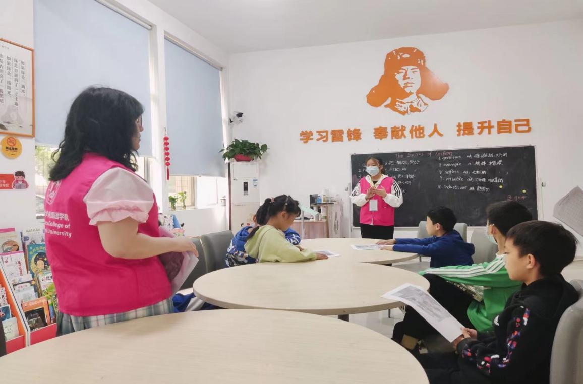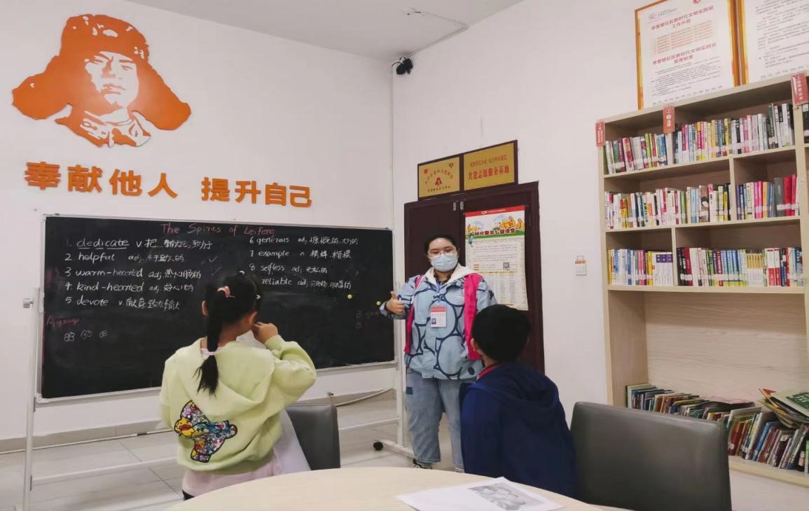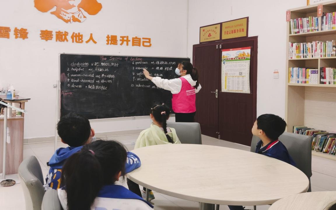 志愿者以雷锋绘本为依托,结合小朋友的年龄特征,用通俗易懂的语言向社区小朋友讲述雷锋的感人事迹,教授与雷锋精神相关的英语表达,重点阐述雷锋精神的时代内涵与实际体现,引导社区小朋友全面、深入地理解雷锋精神。讨论环节中,小朋友们回顾并分享身边的“雷锋”故事,从日常生活的角度思考雷锋精神。