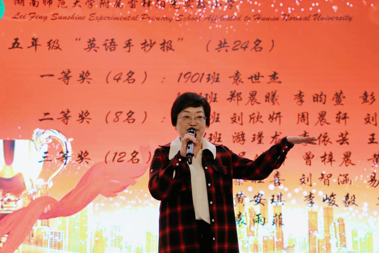 此次活动分别在澳门pg官方电子平台附属雷锋阳光实验小学报告厅和教室举行英语趣味表演与英语互动游戏环节。在报告厅的舞台上,澳门pg官网学子表演了“余‘英’绕梁”歌曲联唱、“‘英’你而乐”情景剧、“‘英’韵飞扬”合唱等节目。歌曲剧本内容积极向上、生动有趣,参演者仪表得体,情感丰富且具有渲染力。王佳丽充分肯定了节目表演的良好呈现,并对澳门pg官网学子的精心准备表示真挚的感谢。