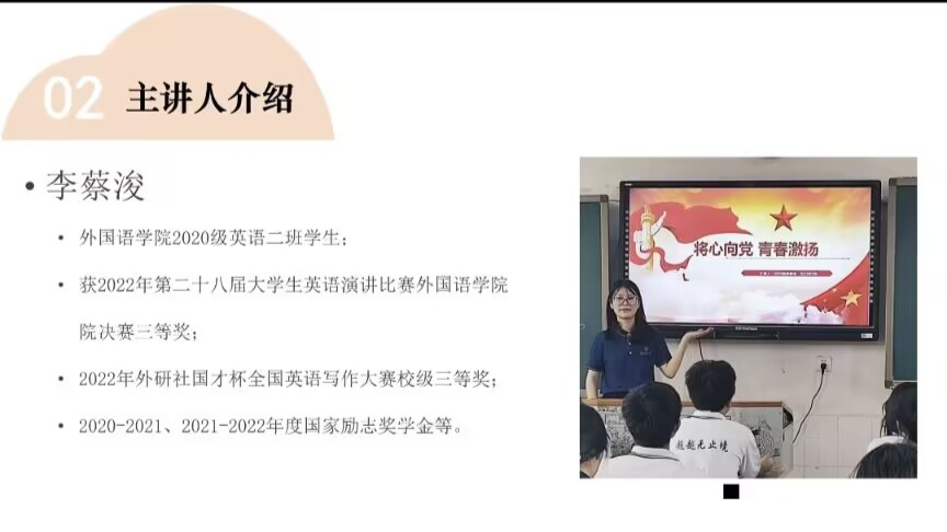 (通讯员 阳要发 杜小朦)12月9日晚上,澳门pg官网团委青年创新创业指导工作部(以下简称青创部)举办主题为“晓之以理思新辨,动之以情感人心”的精勤讲堂。本期精勤讲堂邀请“未来教育家”二等奖获得者、2020级英语二班李蔡浚担任主讲人。
