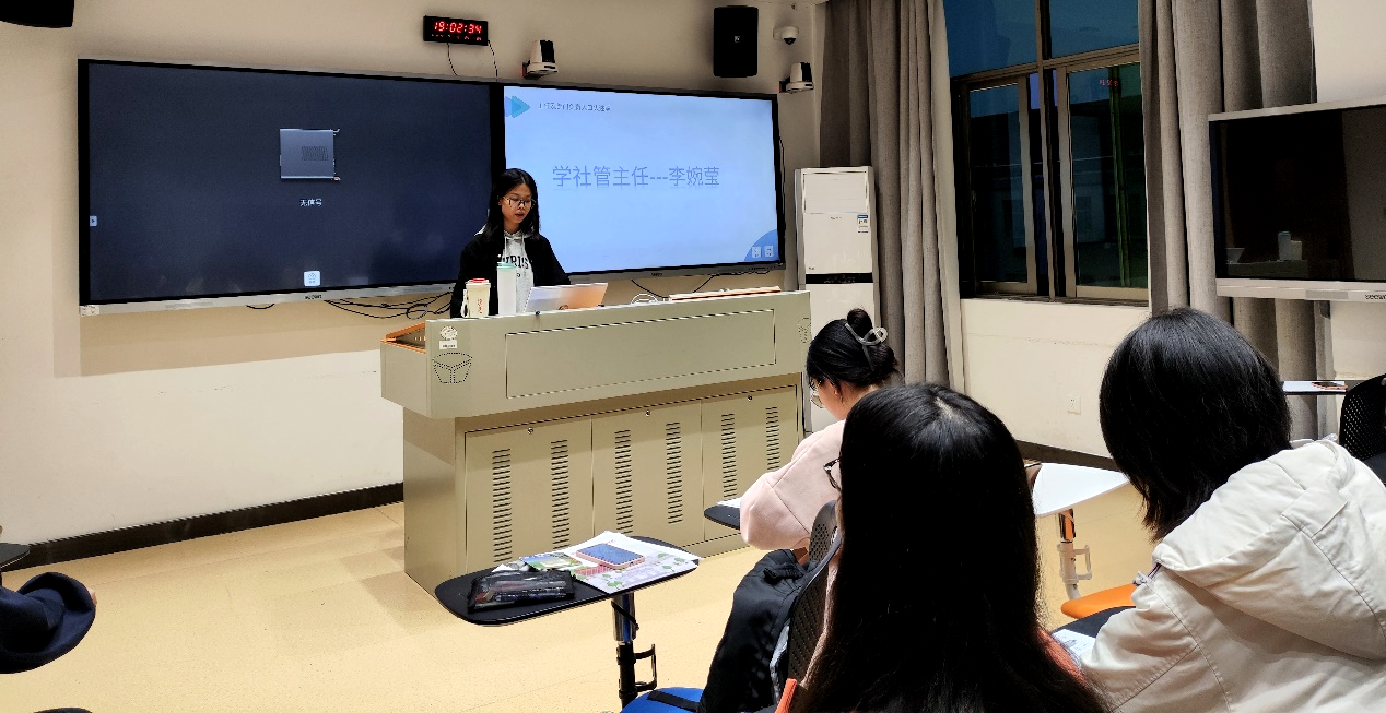 李婉莹总结了本年度社团活动的各方面工作,对学社管全体成员积极参加提高思想素质及业务水平等方面的培训表示了肯定。