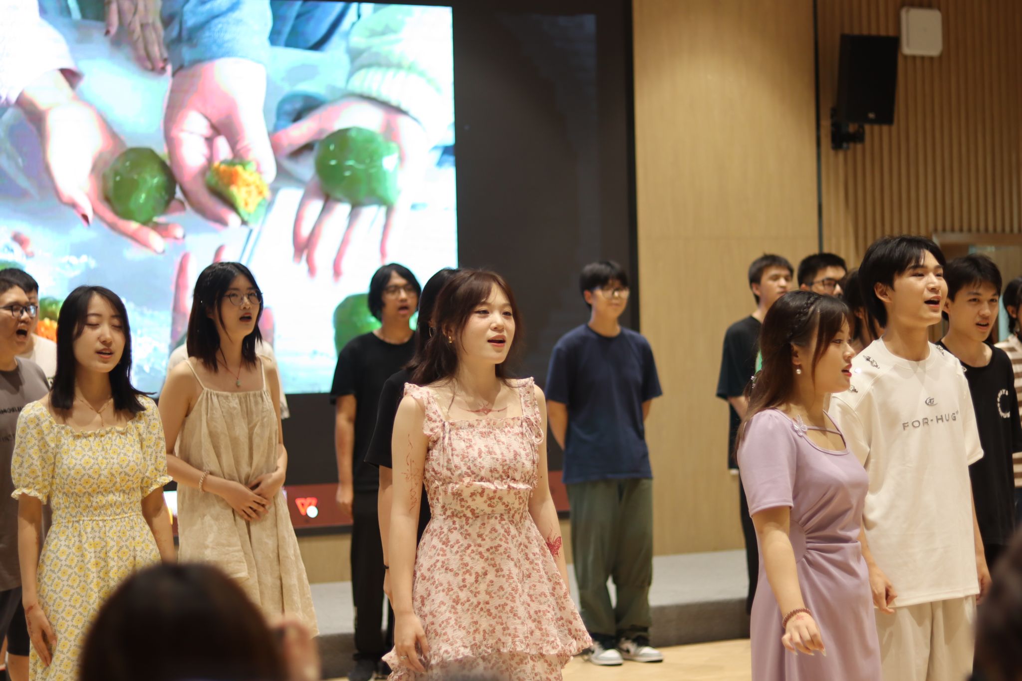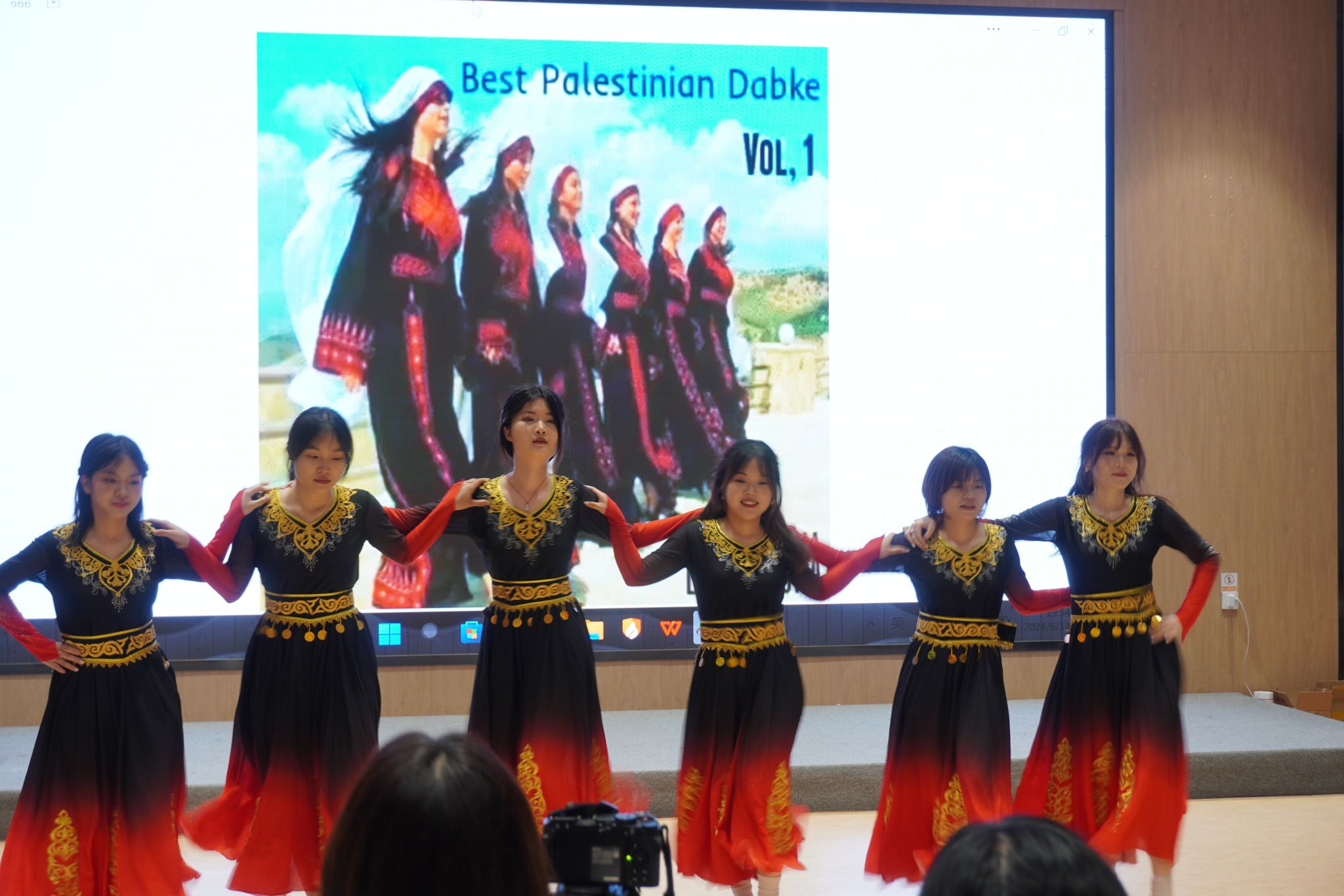 活动伊始,一首由阿拉伯语专业学生合唱的歌曲《كنفضوليا》悠扬响起,轻快的歌声和动人的旋律迅速点燃了全场气氛,观众纷纷加入互动,现场气氛热烈而激昂。随后,阿拉伯语专业学生带来了戏剧表演《山鲁佐德的秘密》,该作品改编自陶菲格·哈基姆的经典之作,在王定筠老师的指导下精彩呈现。随着剧情的推进,山鲁佐德的秘密逐渐揭晓,展现了自我意识的挣扎、理智与癫狂的较量,以及真理如何拯救身份认同的缺失。观众们沉浸其中,时而捧腹大笑,时而陷入沉思。特色舞蹈(الدبكة)的表演更是将现场气氛推向了高潮。同学们以整齐划一的舞步和洋溢着欢乐的笑容,展现了阿拉伯文化的独特魅力,引领观众深入探索这个异彩纷呈的文化世界。