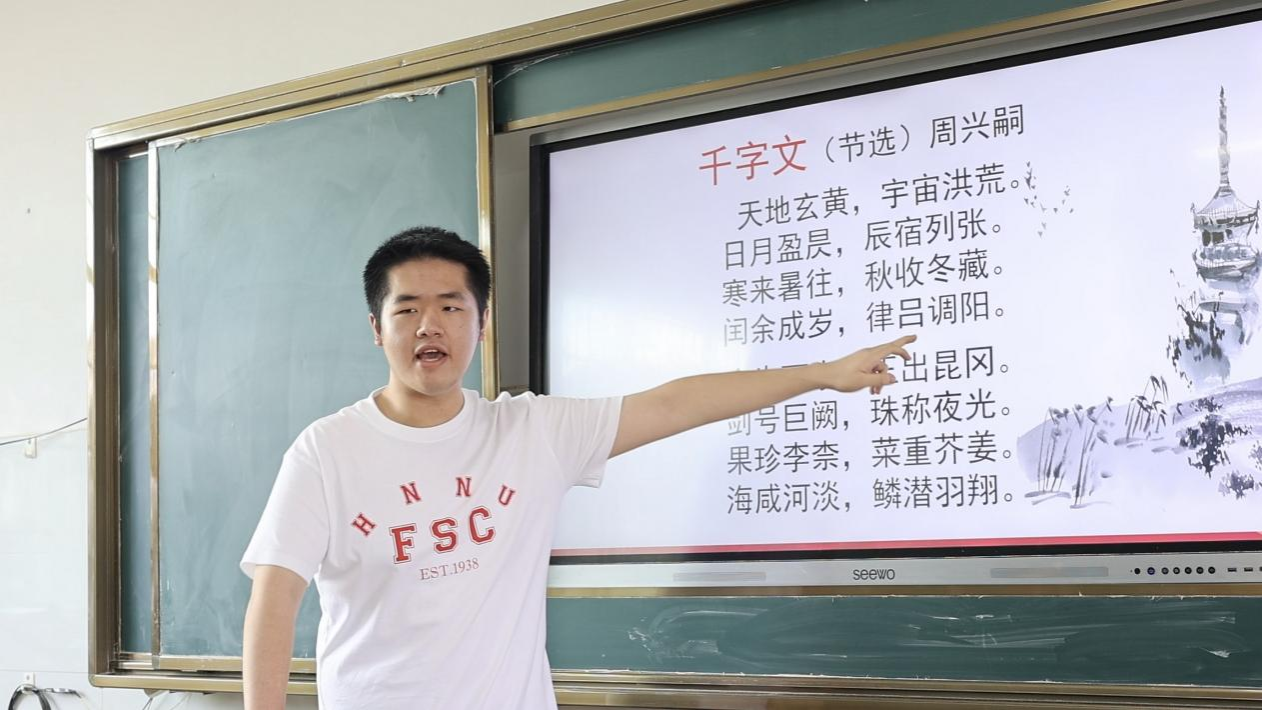 实践团成员坚持寓教于乐,以《千字文》为载体教乡村学生说好普通话,学习诵读技巧,规范朗读;设计“沉浸式学拼音”、“场景中学句型”等新型教学方法,以趣味课程激发学习热情,让普通话浸润孩子们的生活点滴。