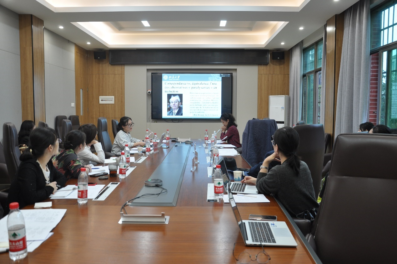 学院法语系学科带头人张弛教授围绕《中西思想翻译中术语的有意误译问题》(La traduction erronée consciente des termes philosophiques entre les pensées chinoise et occidentale),着重阐述了翻译是一种解释性的主体行为,中西思想术语翻译常常使用或制造对应词而不是对等词,随后给出了中西思想重要术语有意误译和有意音译的丰富翻译示例。
