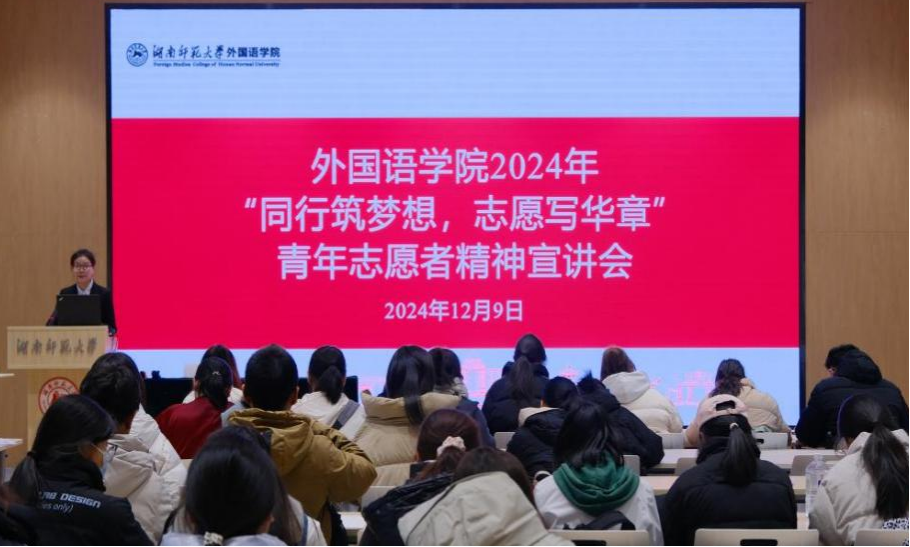 (通讯员 张亦乔)为弘扬志愿精神,激励更多青年学子投身志愿服务事业,用实际行动书写青春华章,12月9日中午,澳门pg官网在腾龙楼613报告厅举办了“同行筑梦想,志愿写华章”青年志愿者精神宣讲会。校青工部代表、院团委各部门负责人、部分兄弟学院代表、语言交流协会会员以及23、24级本科生参加此次宣讲会,活动由院青工部干事张亦乔主持。