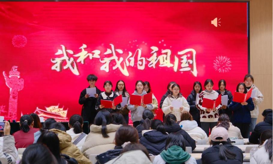 宣讲会还邀请到了语言交流协会的成员进行了特色节目表演——多语种朗诵《我和我的祖国》,为现场增添了浓厚的文化氛围。同学们通过朗诵,表达了对祖国的赞美,并激发了现场观众对志愿服务的热情和向往,坚定了他们成为志愿者,积极奉献的决心。