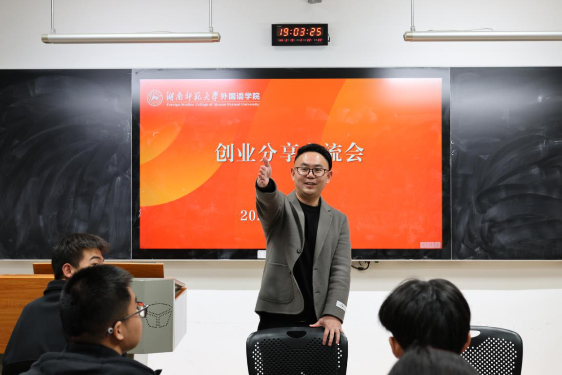 会议伊始,李伟分享自己的创业经历,并对同学们的创业思路与创业实践进行一对一指导,为其提供具体可行的相关建议。针对同学们提出的外语教育培训项目,他从创业的顶层设计、长期发展规划、培育核心优势三大方面提出建议并进行指导。同时,李伟充分肯定了同学们推动国潮文创产品国际化发展的创业思路,表示青年人要大胆创新,勇于将想法付诸实践,做有魄力、有胆量、充满热情的创业者。