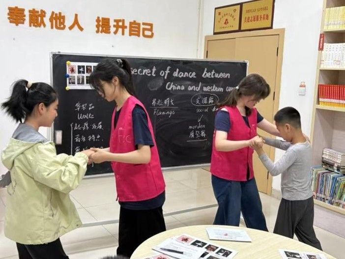 在活动开展过程中,志愿者们创新教学方式,把舞蹈带进课堂,在舞步悦动中,带领小朋友们体会了各国舞蹈文化的深深魅力。