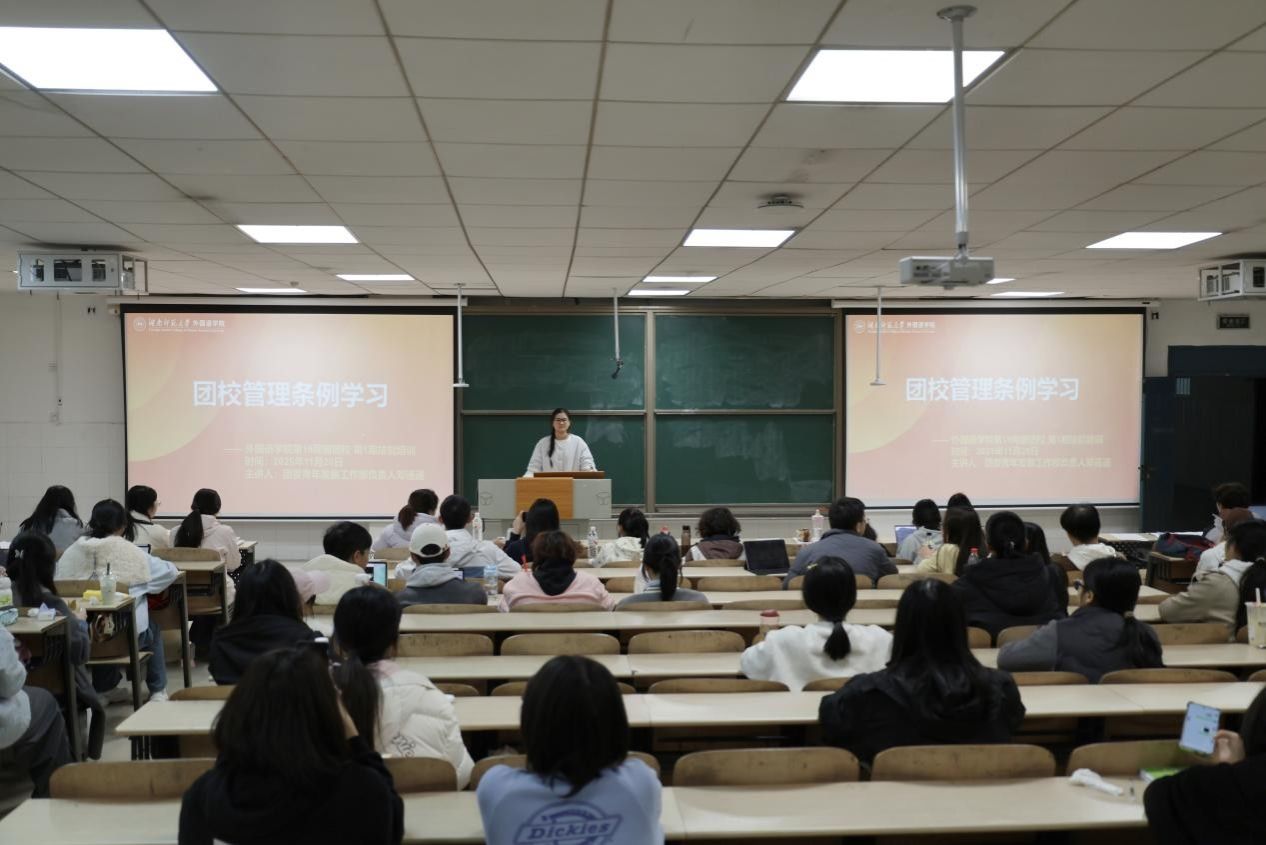 此次培训由团委青年发展工作部负责人邓遥遥担任主讲人,她为学员们解读了团校管理条例、团校的历史以及团校工作目标和原则。她针对考勤制度、请假制度、学院心得评优政策等学员较为关心的问题作出解答。通过此次培训活动,学员们更加明确了自身的职责与担当,对团校工作目标和原则有了更深刻的理解。