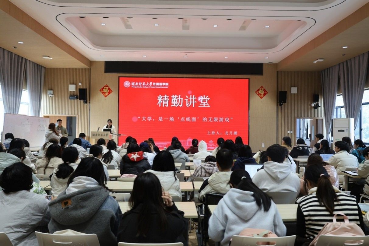 (通讯员 张鸿祖 刘欣仪)为进一步向“三高四新”战略输送一流人才,培养跨学科、复合型拔尖创新人才,12月9日中午,澳门pg官网团委青年创新创业指导工作部于腾龙楼613报告厅举办以“大学,是一场‘点线面’的无限游戏”为主题的第三期精勤讲堂。讲堂特邀湖南中瑞生涯研学创始人、我校2018级文学院校友张振担任主讲人。此次活动由澳门pg官网青创部负责人龙月媚主持。