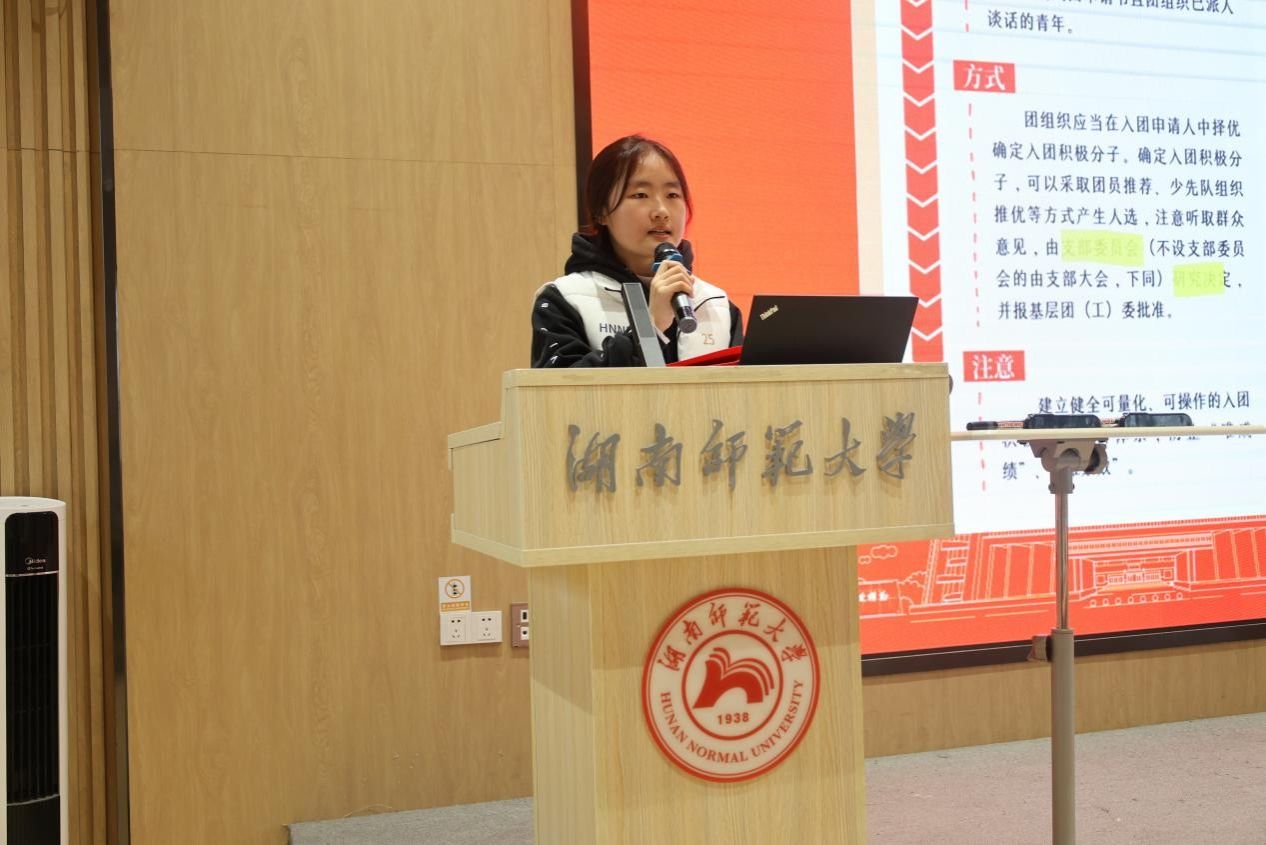 此次培训由院团委组织部负责人雷欣雨担任主讲人,她围绕发展新团员的全流程展开细致讲解,依次拆解申请、审批、接收、归档等关键环节的操作要点与规范。通过此次培训,学员们对发展新团员的完整流程与工作要求有了系统且深入的认识,为后续学院入团工作的标准化、规范化开展筑牢了基础。
