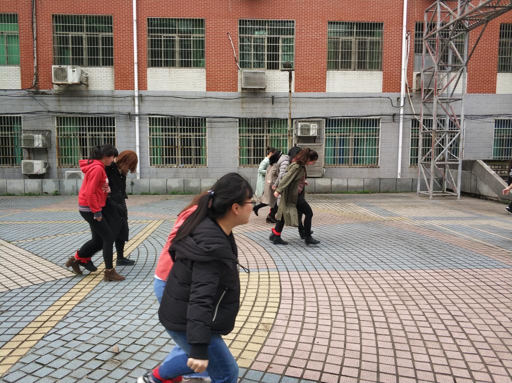 活动开始前,男生准备了32张便条,其中每4张便条写有相同的诗句,女生委员让同学们自行挑选便条,挑选到相同诗句便条的同学组成一组,共8组。此次活动以接力赛的形式进行,由“大象鼻转圈”、“两人三足”及“背对背挤气球”三个小游戏组成。首先,一位同学做成大象鼻原地转五圈后从起点跑向终点,随后,终点的两位同学用绳子绑住两只脚,接应到第一位同学后冲向起点。最后一位同学负责吹气球,并与完成大象鼻游戏的同学合作,背对背将气球挤爆。完成三项游戏用时最少的前三组获得女生节精美奖品。